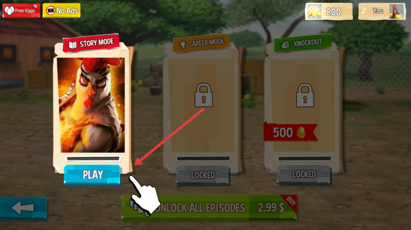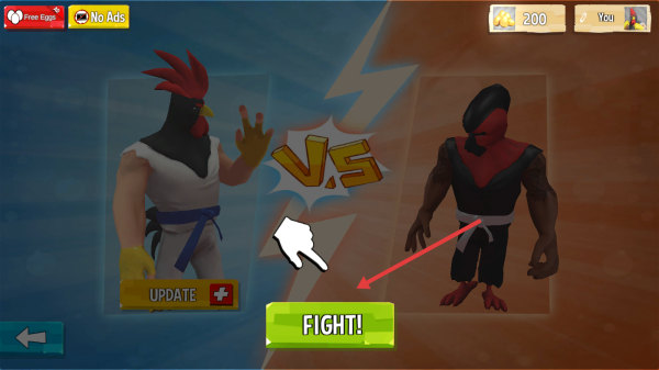 2、选好角色,如功夫鸡,点击FIGHT,进入战斗场景,操控角色,准备与敌方鸡格斗。