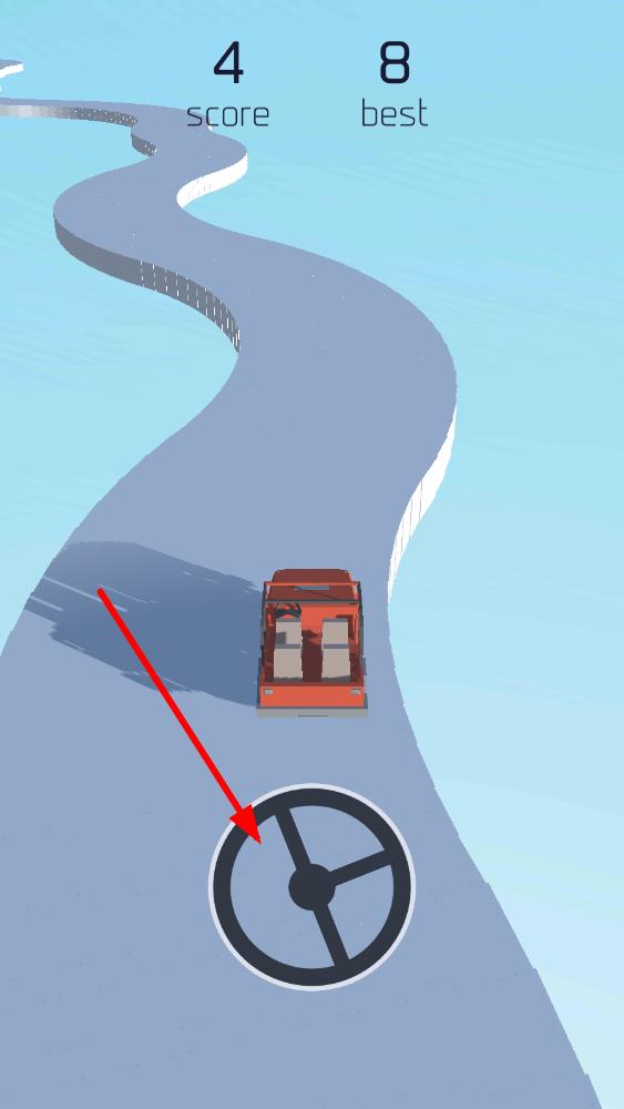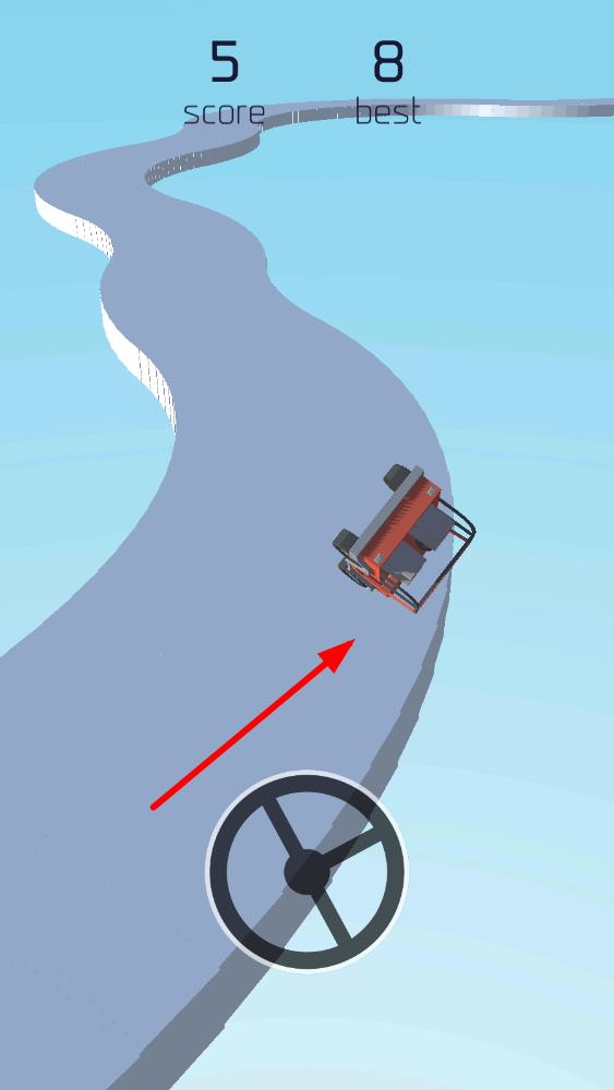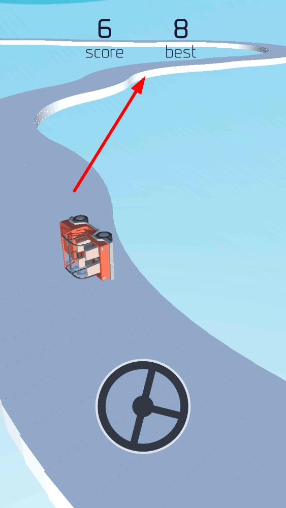 1、进入游戏后单手掌控驾驶,摁住屏幕让赛车加速,在初始的歪扭彩色跑道上行驶,适应跑道起伏与转向节奏。