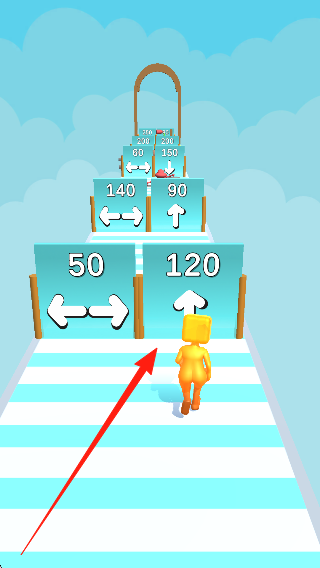 1、观察不同形状的角色特点,了解跑酷场景的基本布局,做好准备,走入正确的门。