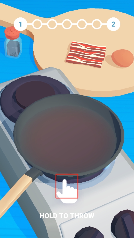 1、长按煎锅下方提示位置,把控时机将食材抛入锅中,开启烹饪流程,注意节奏别失误。