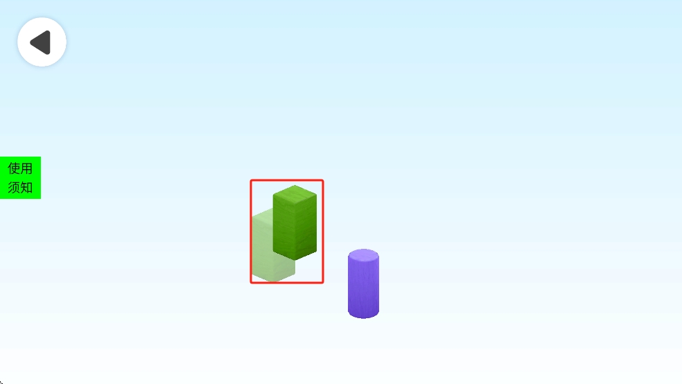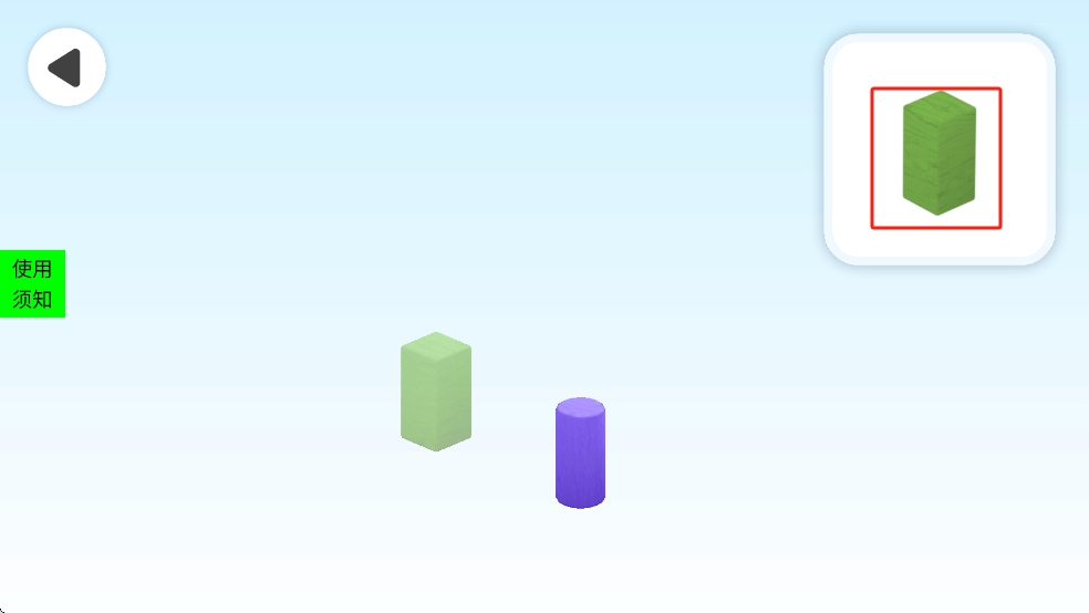 1、开局我们观察右侧目标积木样式,在场景中选择对应绿色长方体积木,准备进行拼接操作。