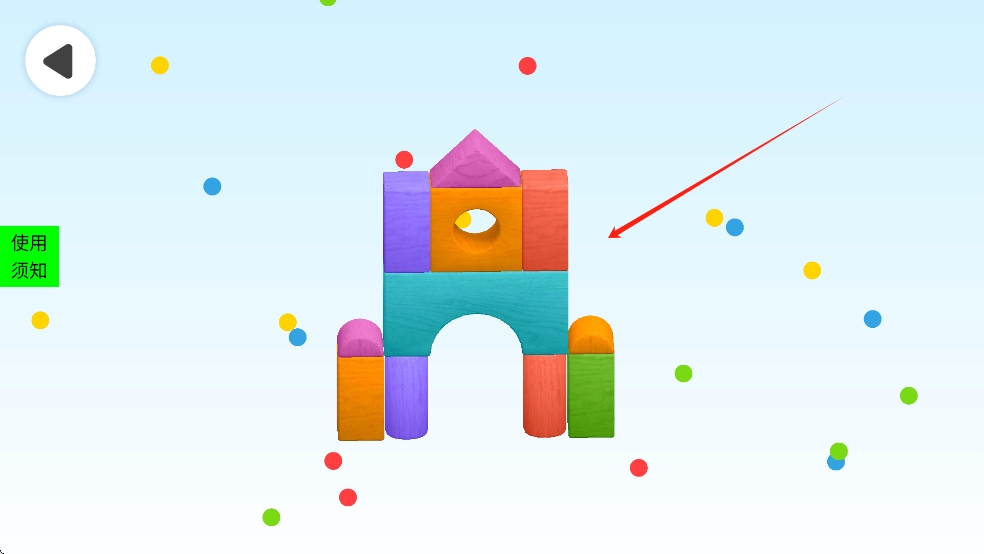 3、持续选取不同颜色、形状的积木,按一定逻辑堆叠、拼接,最终构建出如城堡般的完整造型,完成搭建任务。