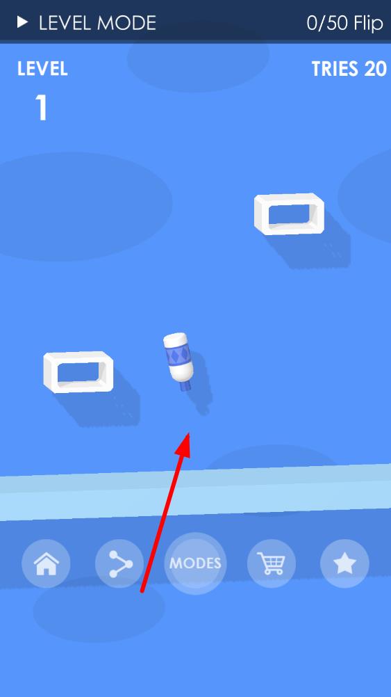 1、进入游戏后观察初始平台间距,手指向上滑动屏幕控制瓶子首次翻转,瞄准前方平台完成跳跃,开启基础翻转挑战。