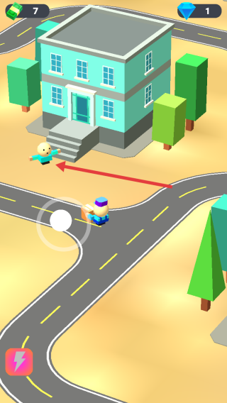 2、驾驶角色沿道路行驶,根据箭头指向,前往目标房屋,注意避开障碍,保持包裹完好。