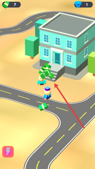 3、到达房屋前,将包裹交给门前人物,完成配送,获取奖励,如金币、钻石,解锁新订单。