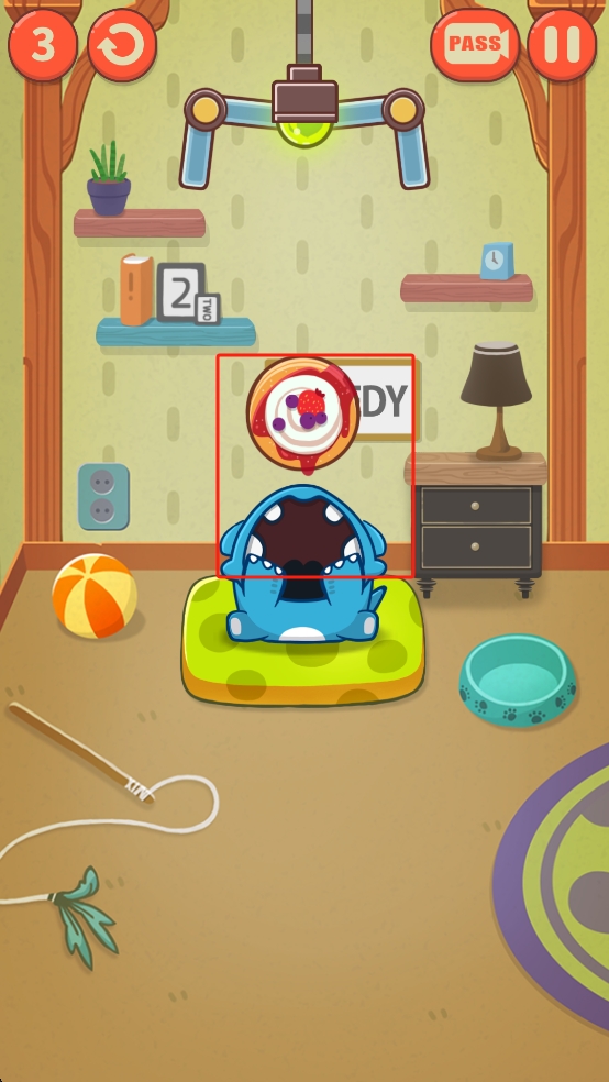 1、按钮点击操作:用手指点击屏幕中的按钮,每点击一次便会给小怪物喂食,根据关卡要求控制点击次数与频率,满足喂食需求。