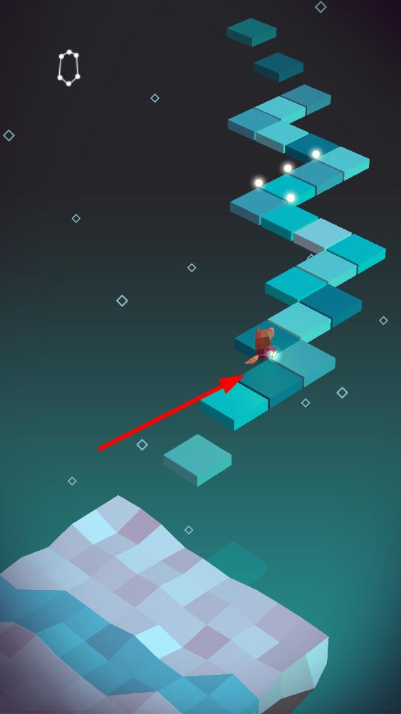 1、进入游戏后轻触屏幕左右控制小动物转向,在初始阶梯上熟悉快速行进节奏,避开首个障碍,开启寻找白猫的星河旅程。