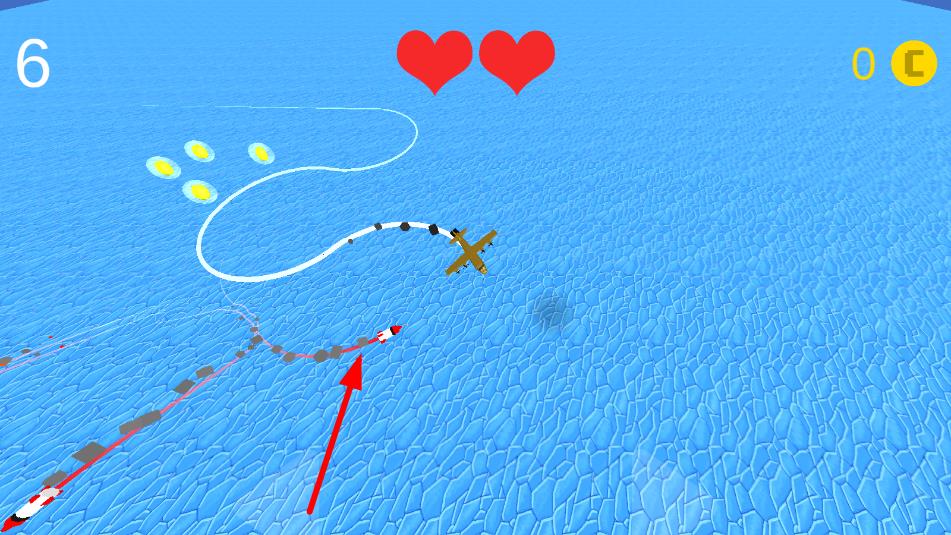1、进入游戏后选择初始飞机,在宽阔海面点击开始飞行,导弹随即启动追踪,通过单指滑动屏幕操控飞机移动开启躲避挑战。