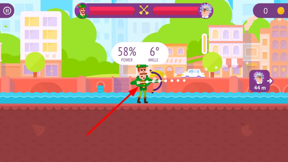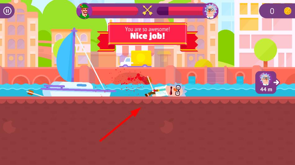 1、进入游戏后选择初始角色,在关卡中瞄准敌人滑动屏幕控制投掷力度与方向,扔出武器击杀敌人开启闯关。