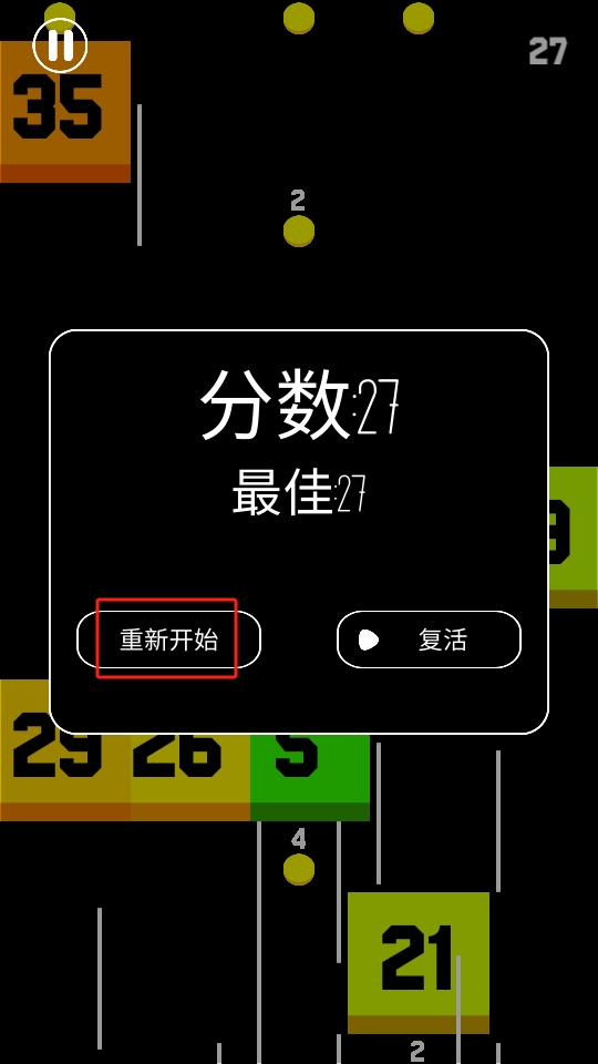 3、若是方块耗尽,游戏就结束了,界面会显示本局获得的分数,可以点击下方按钮重新开始挑战。