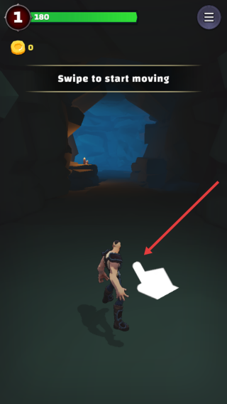 1、在洞穴场景,按Swipe to start moving,滑动屏幕让角色前进,开启冒险。