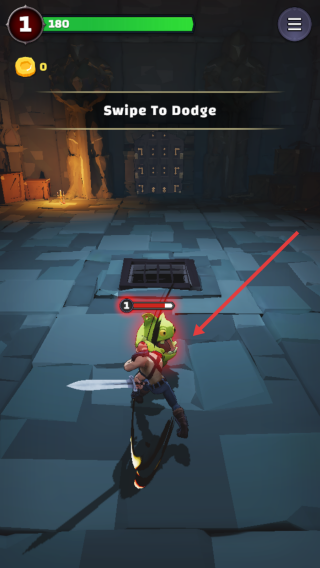3、战斗时,按Swipe To Dodge,滑动躲避怪物攻击,用剑反击,积累战斗技巧,推进关卡。