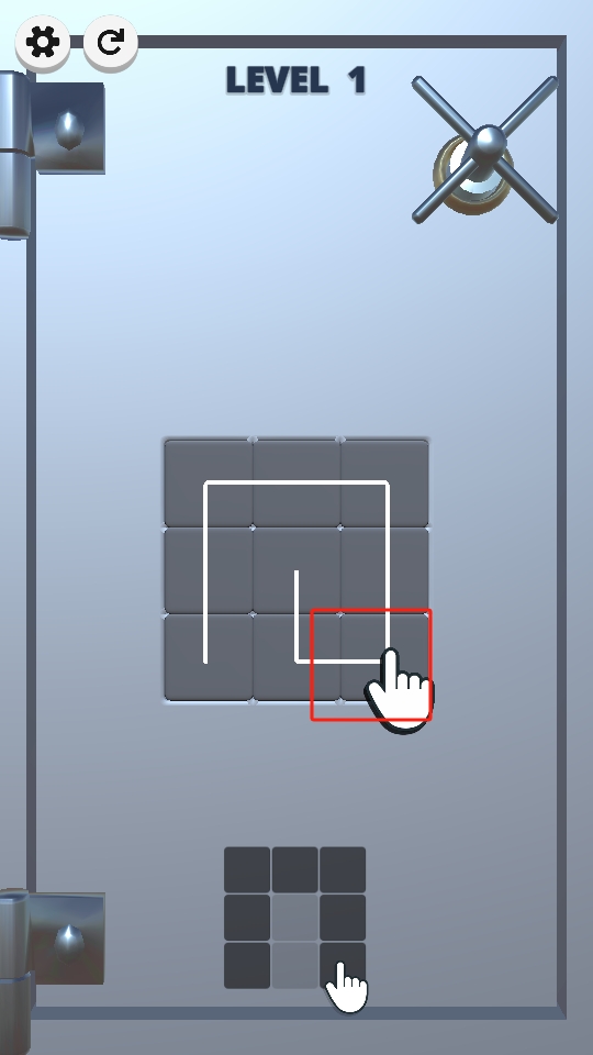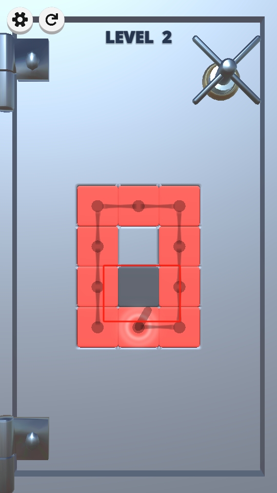 金库黑客是一款趣味休闲玩法的手机作品,玩法核心是通过手指滑动在方框内完成连接,每个方块仅能被滑动一次,若思路受阻,不妨动手尝试,随着关卡推进,方块体积会逐渐变大,挑战难度升级,让人在一次次连接尝试中感受解谜的乐趣与突破难关的成就感。