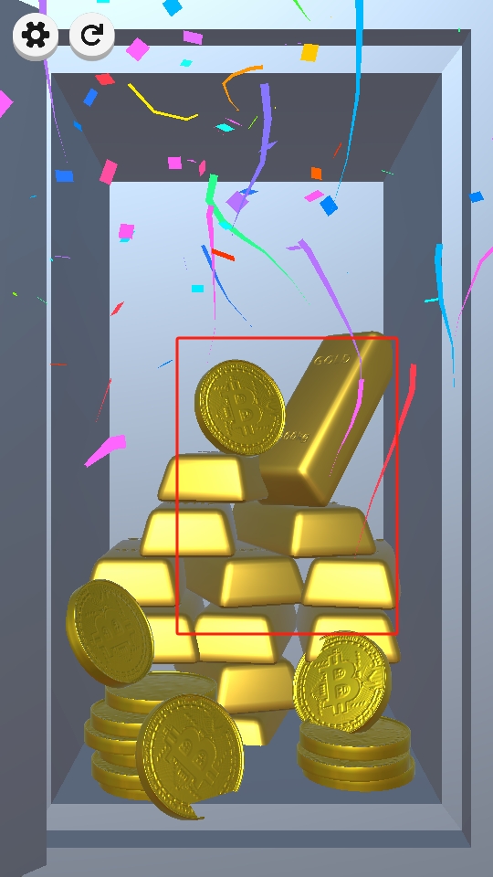3、成功解锁后,出现满是金条和比特币的画面,这是游戏通关后的奖励展示,象征着成功开启宝藏。