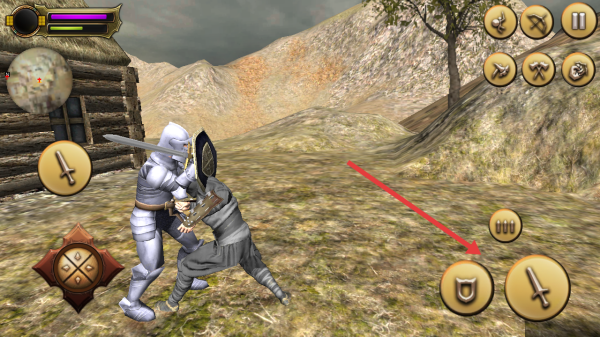 3、战斗时,点右侧技能剑、盾攻击/防御,击败圣殿骑士Templar,完成任务,获奖励。