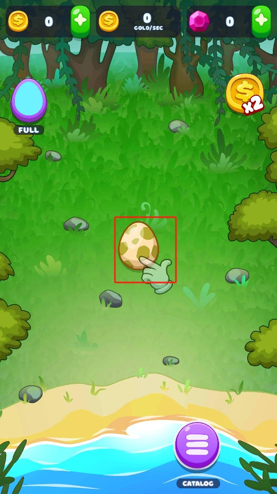 1、进入作品后,点击场景中的斑点蛋,使其孵化出生物,这是开启后续游戏进程的关键操作。