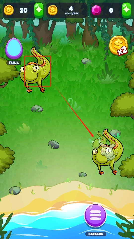 2、将相同的绿色生物进行合并,合并后能产生新的生物,同时还可获得金币,不断积累资源。