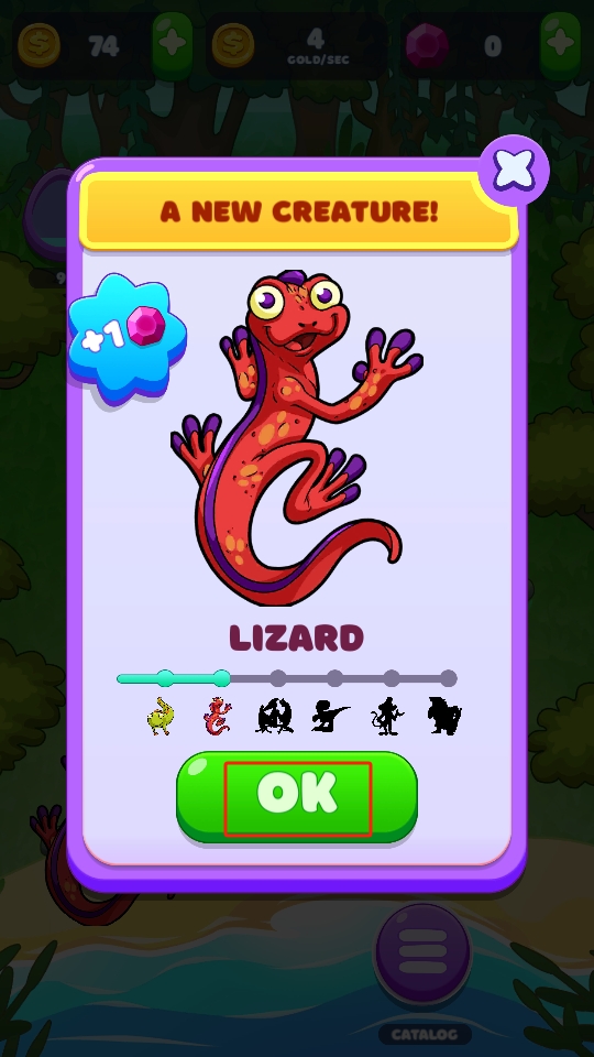 3、当进化出指定高阶生物后,区域里的生物合成速度更快,点击绿色的OK按钮,确认并继续游戏。