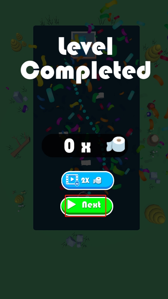 3、角色成功进入厕所后,场景会弹出通关动画,点击绿色的Next按钮,进入下一关继续游戏。