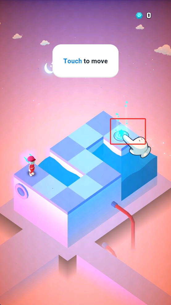 1、进入作品后,根据上方的提示,点击目标位置,操控角色移动,前往有蓝色光圈的区域。