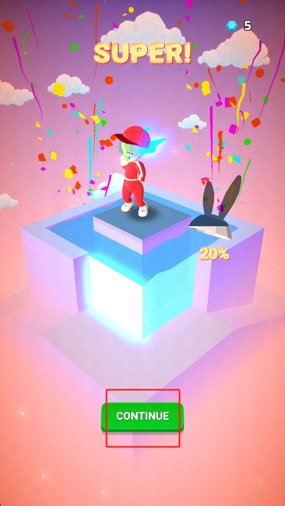 3、成功完成当前阶段后,界面显示SUPER,点击绿色的CONTINUE按钮,进入下一部分游戏。