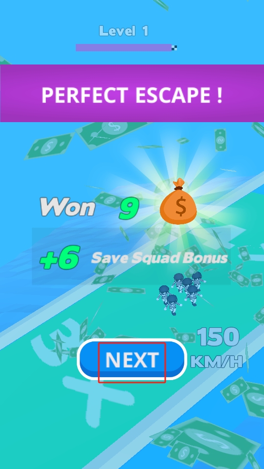 3、成功完成逃脱后,界面显示PERFECT ESCAPE,点击蓝色的NEXT按钮,进入下一关游戏。