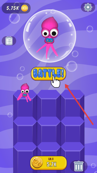 1、点击BATTLE,操控粉色章鱼泡泡包裹,进入海底战场,准备与其他玩家/角色对战。