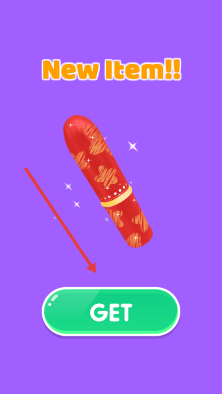 3、抵达终点解锁新口红NewItem,点击GET领取,重复挑战收集更多款式,提升操作,通关更高Level。