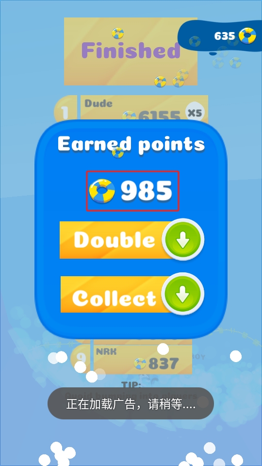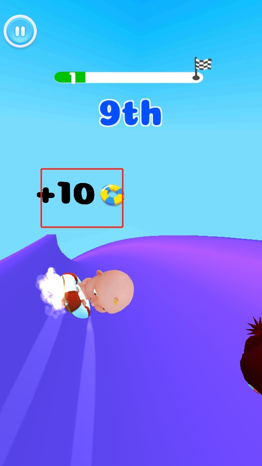 2、角色前进时,收集黄色游泳圈道具,每次收集可获得+10的奖励,助力提升分数与排名。