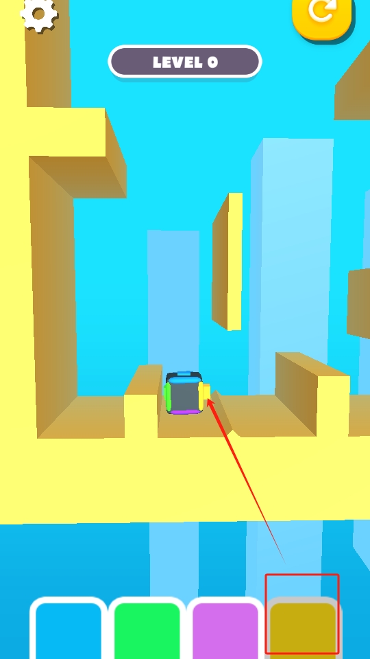 2、根据方块与障碍的颜色对应关系,点击下方什么颜色的按钮,方块的就会对应的伸出哪条腿。