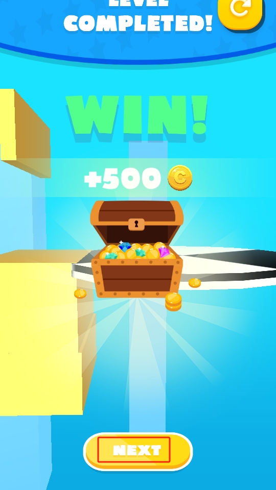3、冲过终点时,方块会恢复到初始的形态并蹦跳三下,还能获得金币宝箱等奖励。