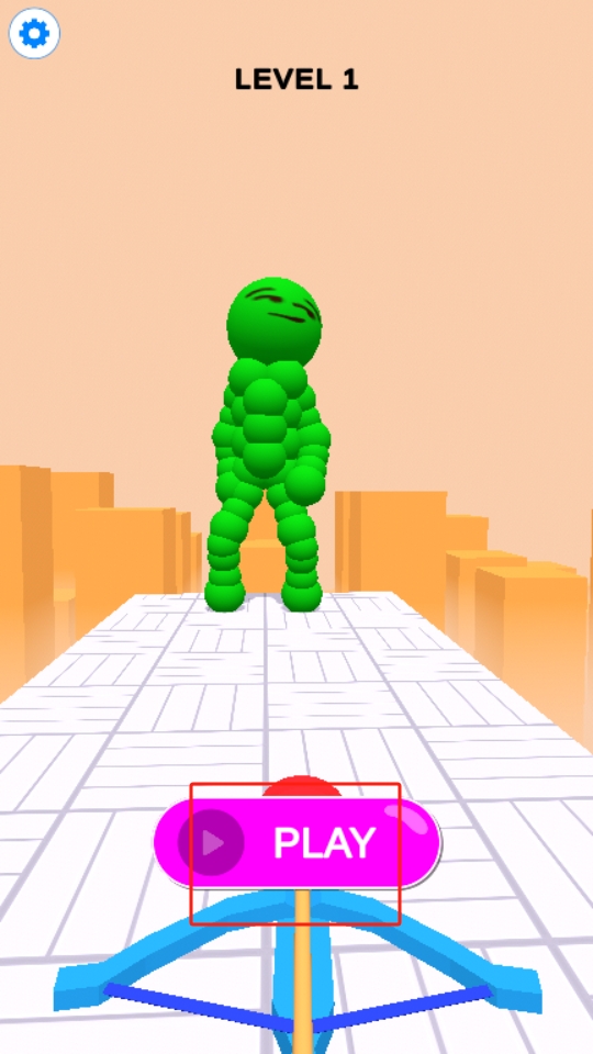 1、进入作品后,点击下方粉色的PLAY按钮即可开始游戏,准备利用弓箭攻击绿色人形目标。