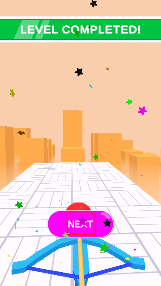 3、将巨人彻底打散后,散落的小球会化作光点消散,此时点击粉色NEXT按钮,进入下一个关卡继续挑战。