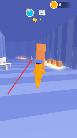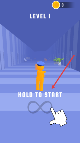 1、Level1开始,长按HOLDTOSTART,控制橙色戴蓝帽小人于走廊开启跑酷流程,准备执行搬运箱子任务。