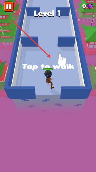 1、Level1开始,按Taptowalk点击屏幕,控制角色在中式建筑场景的通道移动,避灯光。