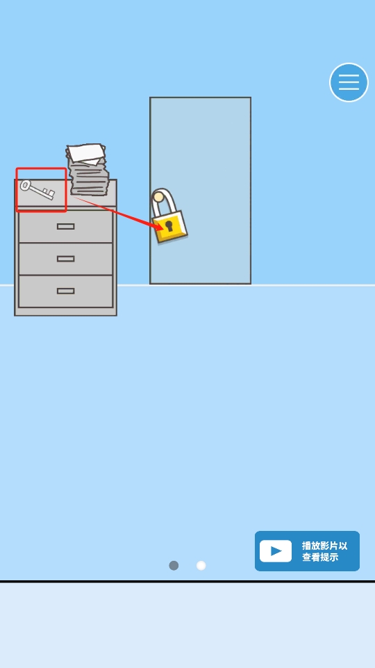 2、当在抽屉上找到钥匙后,用手指将钥匙拖动到门上的黄色锁具位置,通过这样的操作来解锁那扇门。