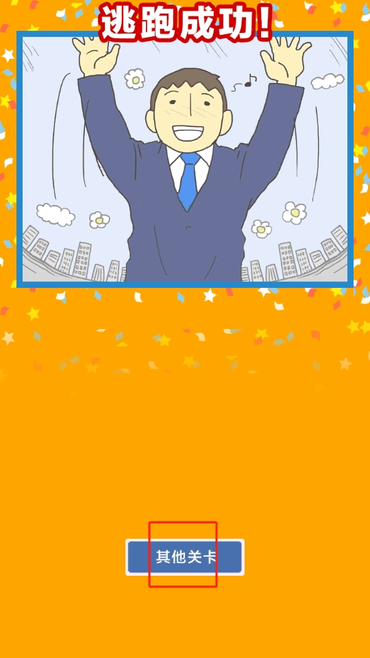3、成功逃脱之后,游戏界面会显示逃跑成功的字样,这时候点击其他关卡按钮可进入新的场景进行挑战。