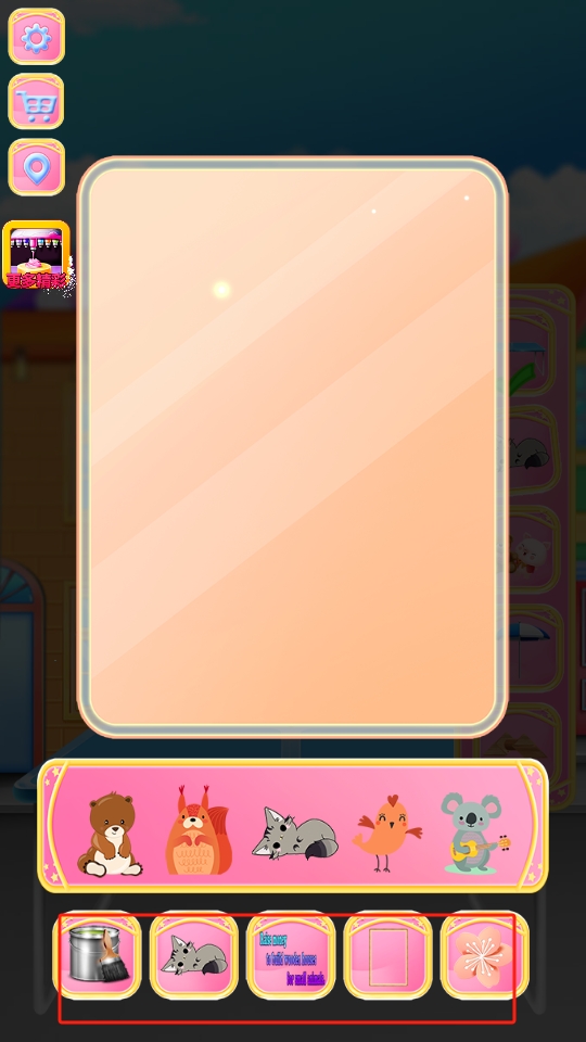 2、下方有动物和工具等图标,点击这些图标,可对上方的空白区域进行装饰或触发相关游戏环节。