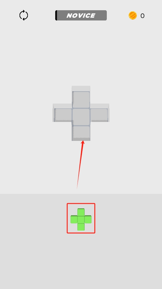 1、进入作品后,将下方绿色十字形方块拖动到上方对应的十字形空缺处,完成方块的放置。