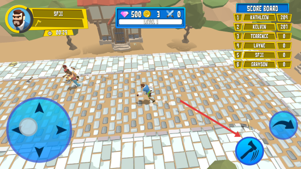 2、进入TARTIGA场景,用左下角摇杆移动角色,靠近敌人后,点击右下角锤子图标攻击,积累得分。