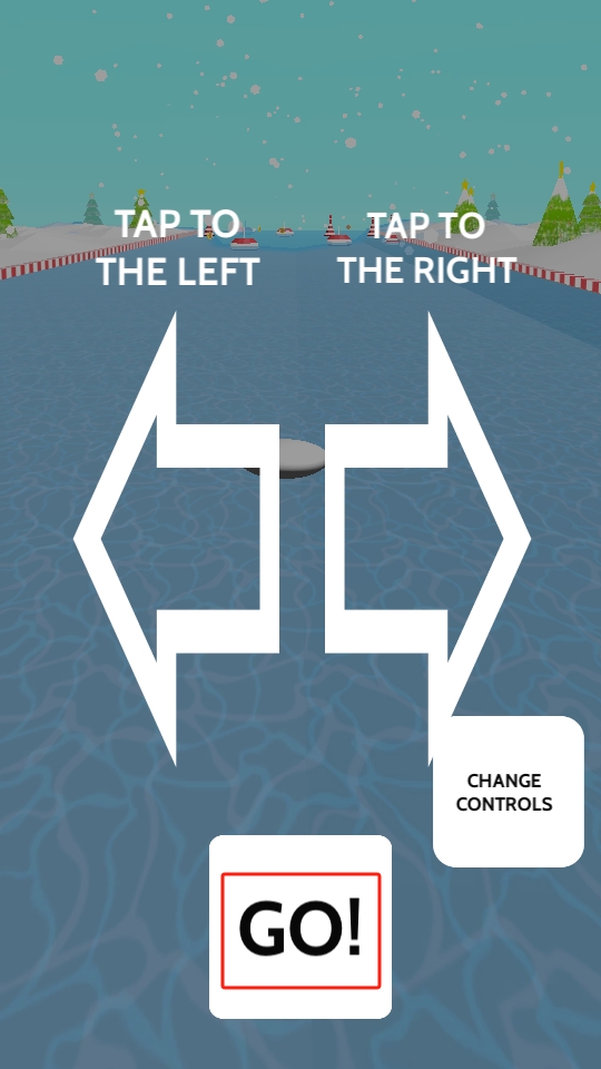 1、进入作品后,我们先熟悉一下操作,然后按照提示点击左右区域,操控物体在水面赛道移动。