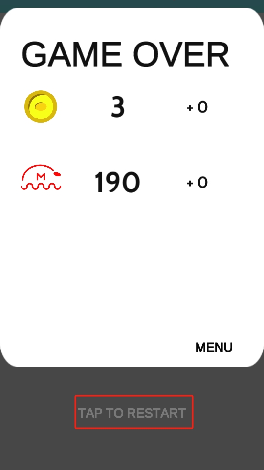 3、游戏结束后,界面显示GAMEOVER,这时点击TAPTORESTART按钮,即可重新开始挑战。