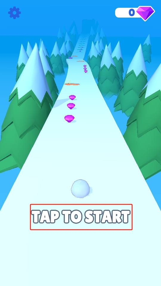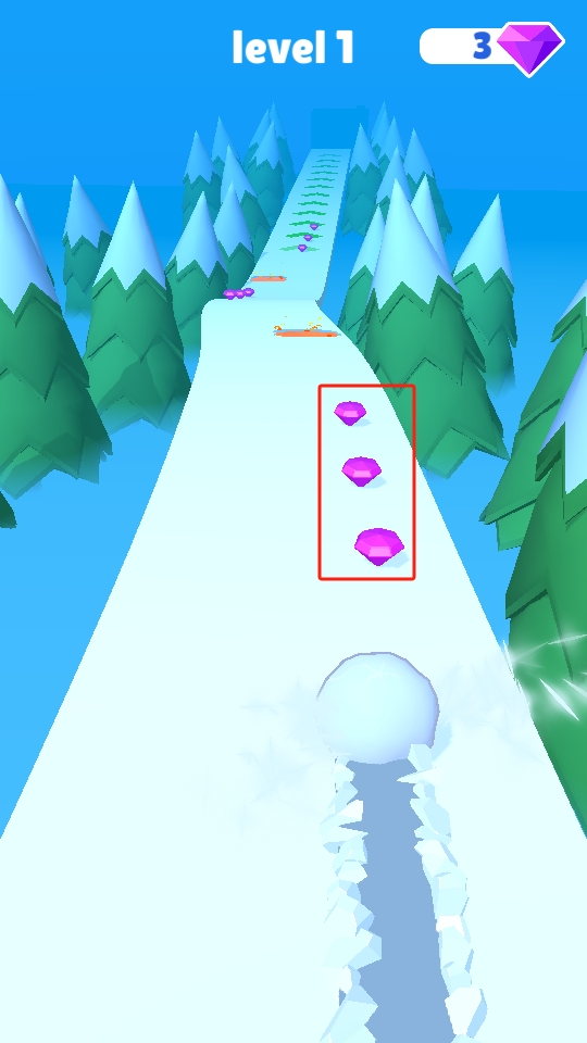 1、点击下方区域开始,操控雪球在布满紫色钻石的雪地赛道上移动,开启收集钻石的过程。