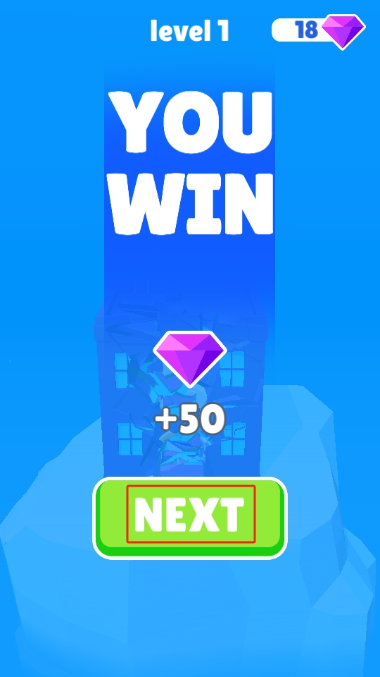 3、成功通过关卡后,界面显示胜利,还获得了50钻石的奖励,点击下方的绿色按钮即可领取。