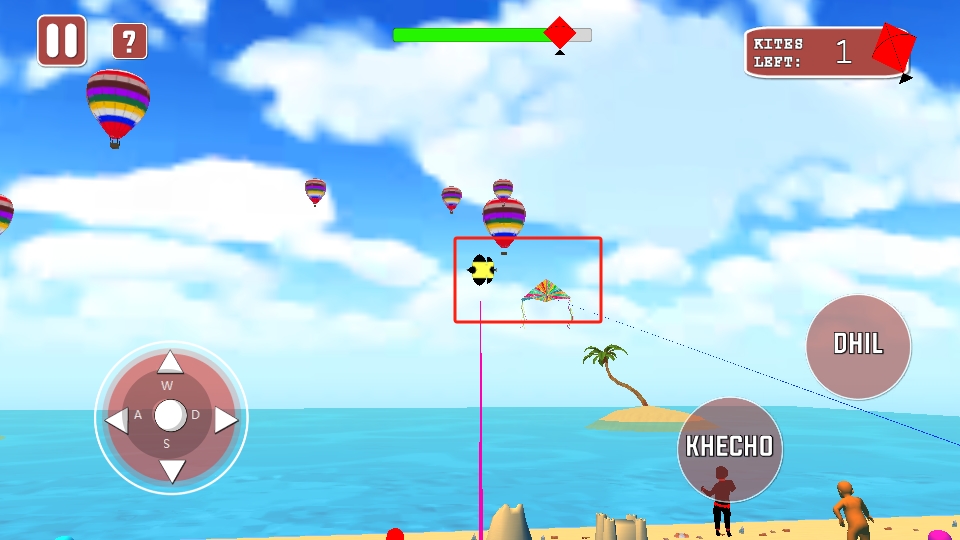 2、操控风筝在有热气球等元素的场景中移动,与其他风筝互动,尽量完成关卡要求的操作。