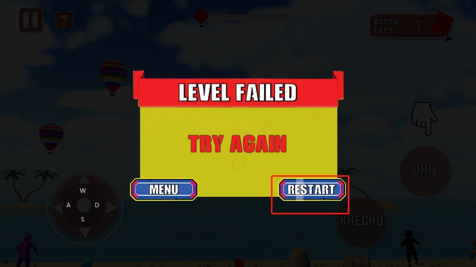 3、要是不小心把生命值扣完了,游戏就结束了,可以点击右下角的按钮重新开始关卡。