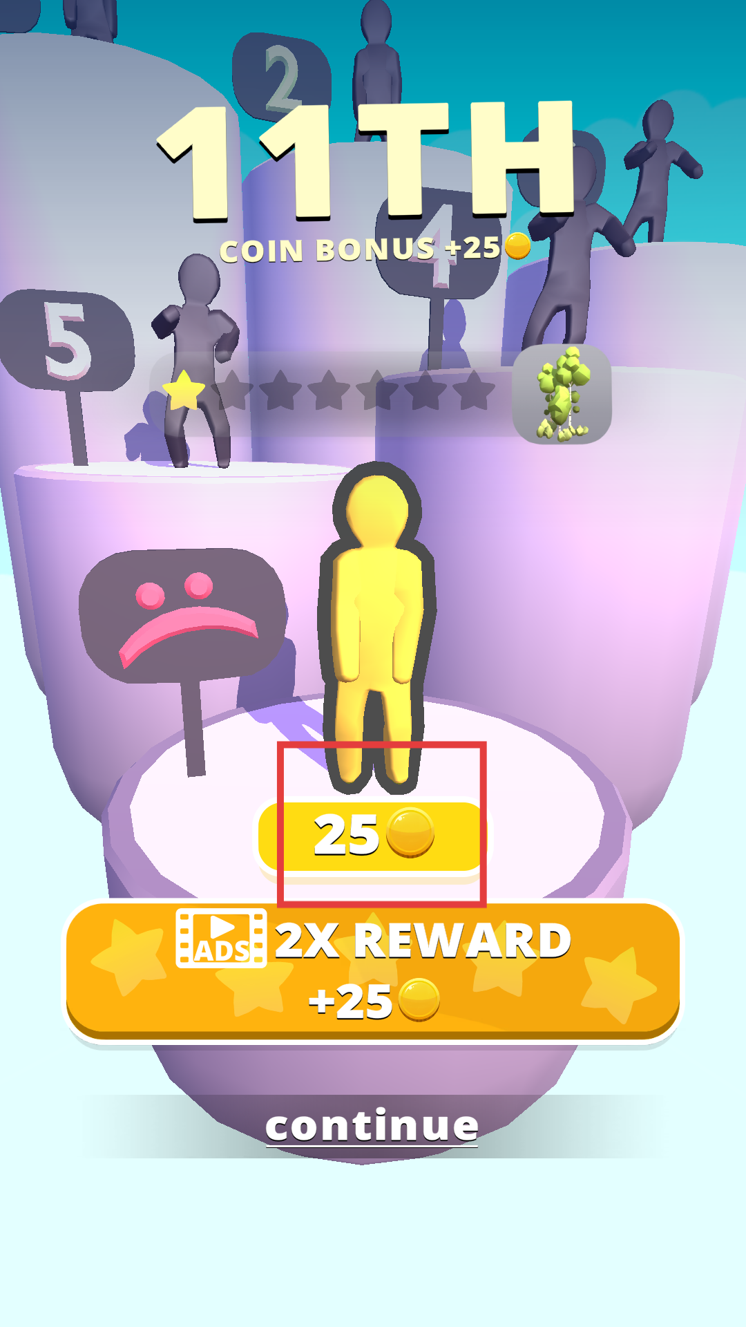 3、冲过终点线的瞬间,橡皮人会做出欢呼动作,赛道两侧会绽放彩花,同时弹出本次奔跑的成绩和奖励。