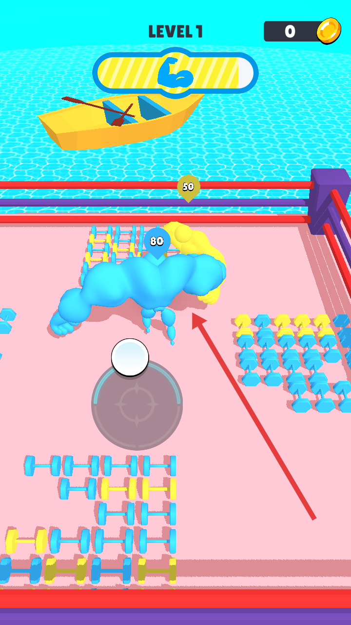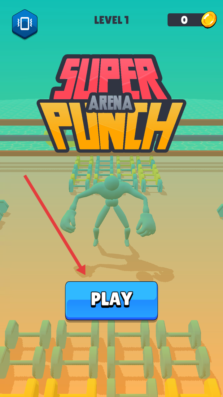 1、点击PLAY按钮,进入SuperArenaPunchLevel1,操控蓝色肌肉角色向数值80vs50的黄色敌人靠近。