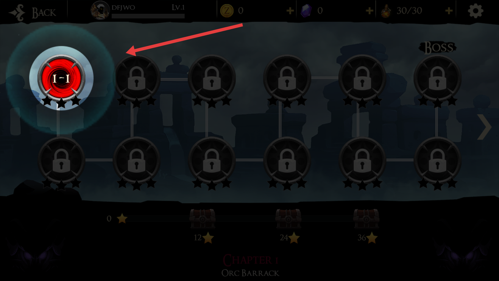 1、点击章节地图中1-1关卡,选择NORMAL难度,消耗3瓶道具,点击PLAY进入战斗流程。