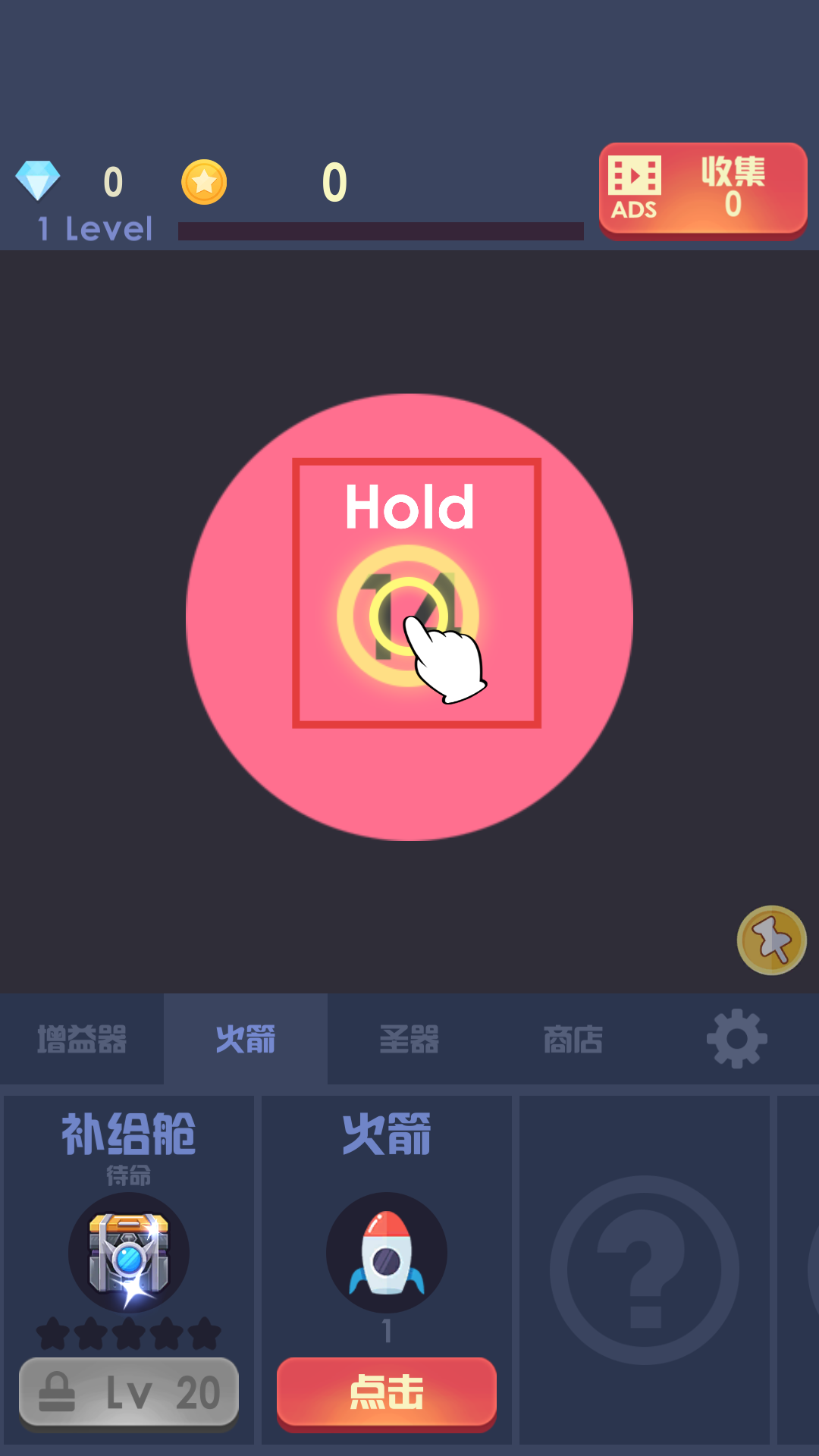 1、进入游戏后我们可以看到中间粉色圆形区域内有Hold标识,按照提示长按该标识。